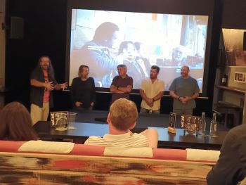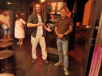 Štáb se tu také potká s americkou rezidentkou, slovensko-americkou herečkou Silvií Šuvadovou (Kolja). Představit před odletem film českým novinářům přišla herecká delegace ve složení - kachyňovský herec Bohumír Starý, scenárista, režisér a herec Marek Dobeš (Choking Hazard Kajínek), Daniel Krutský, Ivan Sochor a Martin César. Společně divákům v podolském kono klubu Rest.Art dali nahlédnout do zákulisí natáčení projektu, o kterém samotný Jan Hřebejk na Twitter napsal „…Ďáblova sbírka přinese slušnou porci naprosté tvůrčí svobody… Hodně mi to sedlo!“