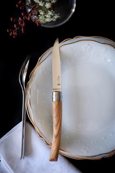 Se steakovými noži značky Opinel bude krájení opravdovou radostí! Elegantní příbor je vyroben z martenzitické ušlechtilé oceli, která je usazena do masivní rukojeti z olivového dřeva. Čepel dlouhá 10 cm je navíc doplněna o ocelový kroužek, díky kterému je příbor na stole dokonale stabilní. Jde tedy nejen o kvalitní, ale i vzhledově velmi atraktivní kuchyňské vybavení, které bude šperkem vašeho prostřeného stolu. Obdivovat jej budou jak milovníci šťavnatých steaků, tak i nadšení interiérový designéři s vytříbeným estetickým cítěním. Sadu 4 nožů z kolekce Table Chic naleznete v prodejnách Potten & Pannen – Staněk a na e-shopu www.pottenpannen.cz za 3 550 Kč.