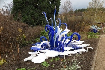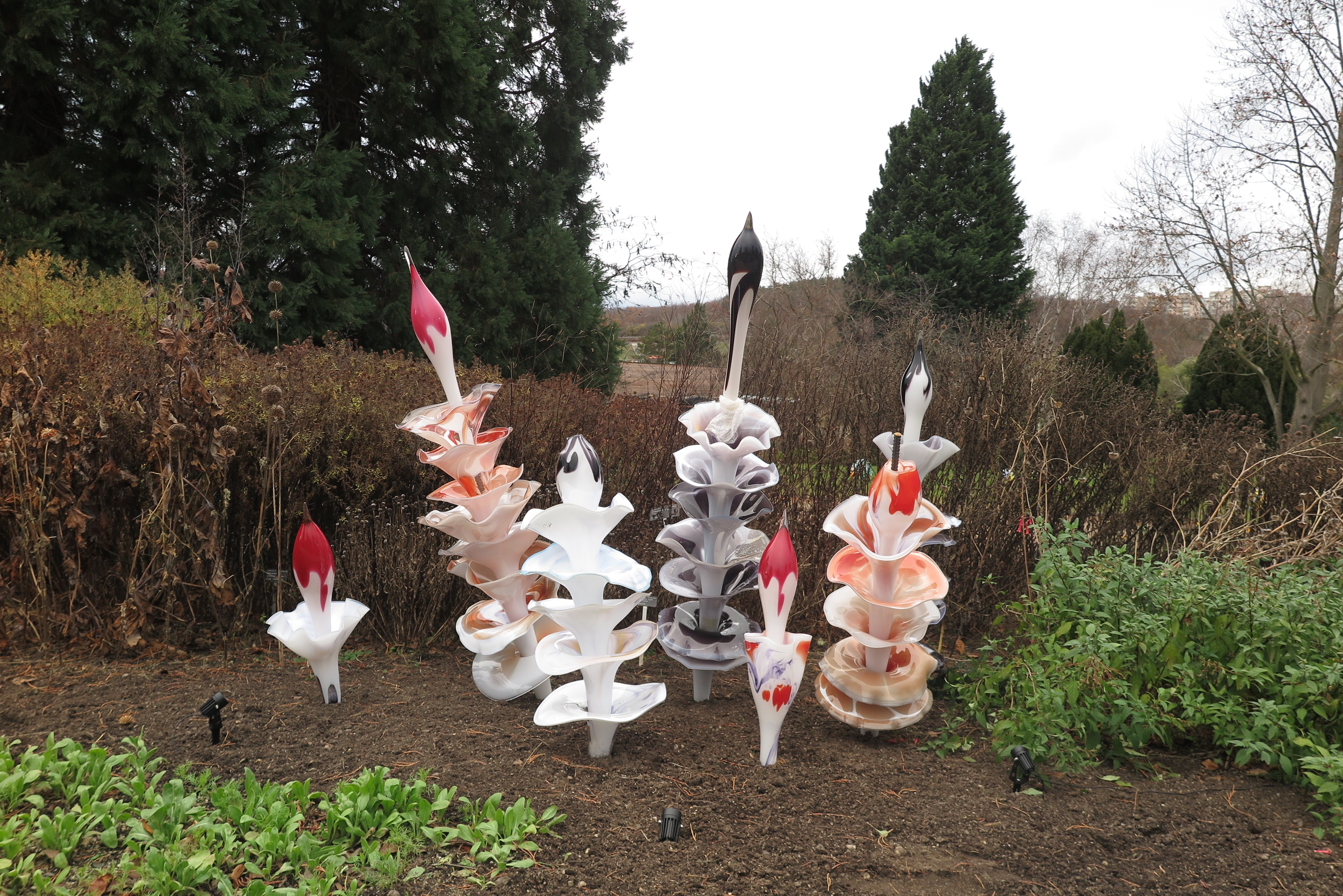 Botanická zahrada v Troji je dost rozlehlá, v členitém terénu, což umožnilo rozmístit křišťálové květy a další objekty citlivě a působivě v úžasném množství i barevných kombinacích tak, aby vynikly a souzněly s prostorem, který ozvláštňují a přitom nepřehlcují. Takže úplně jiná výstava, než jakou lze spatřit ve výstavních síních. Najdete květy jako ze života i fantazijní, s vtipnými názvy, jako je skleněnka zářivá, bublinkovka sodová, hadovka lesklá, potkáte dokonce i Adélu, co ještě nevečeřela (i s tichým popěvkem), jezírko obklopené neskutečně půvabnými křišťálovými plameňáky i zelenkavou sekci Urana, která září jakoby vlastním světlem (nebojte se, uranové sklo není jakkoliv nebezpečné). A že je ten advent, tak po setmění vynikne nasvícení největšího osvětleného vánočního stromu v Praze (pochopitelně rostlého), pod nímž se skrývá stylizovaný betlém, samozřejmě ze skla. A před tím stromem velká andělská křídla, kde se můžete vyfotit, aby vám ta andělská radost vydržela. Specialitou výstavy jsou reprodukované tóny skleněné harfy v podání Petra Špatiny, které zaznívají u některých exponátů.