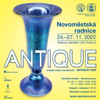 Na Novoměstské radnici se od čtvrtka 24. do neděle 27. listopadu bude konat tradiční veletrh Antique. Více než pět desítek starožitníků na něm již po 47. představí to nejzajímavější ze své nabídky: od oblíbených šperků a bižuterie, přes sklo, porcelán a keramiku až po starožitný nábytek, textil, historické zbraně a staré bankovky a mince. Antique je tradičně největší a nejreprezentativnější přehlídkou starožitností v ČR.