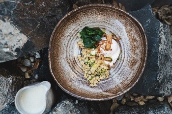 vepřová kroketa, tuřín, chřestová polévka, vejce 63st.