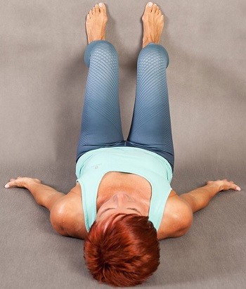 - Paže jsou mírně od těla (cca 45 stupňů), ramena a lopatky stáhněte od uší dolů, dlaně dejte vzhůru. Pánev je v přirozené poloze. Hlava je v prodloužení páteře, tj. bez záklonu.