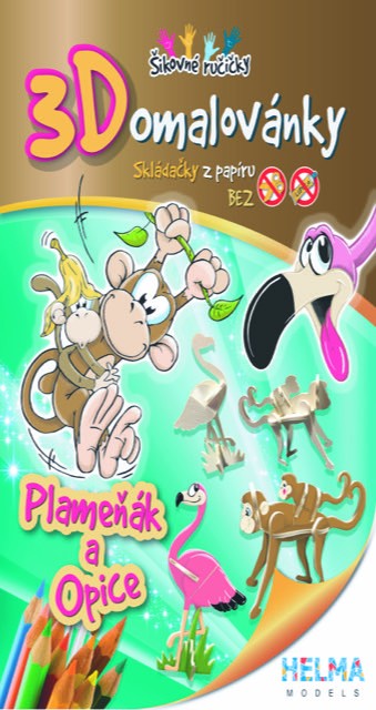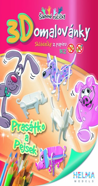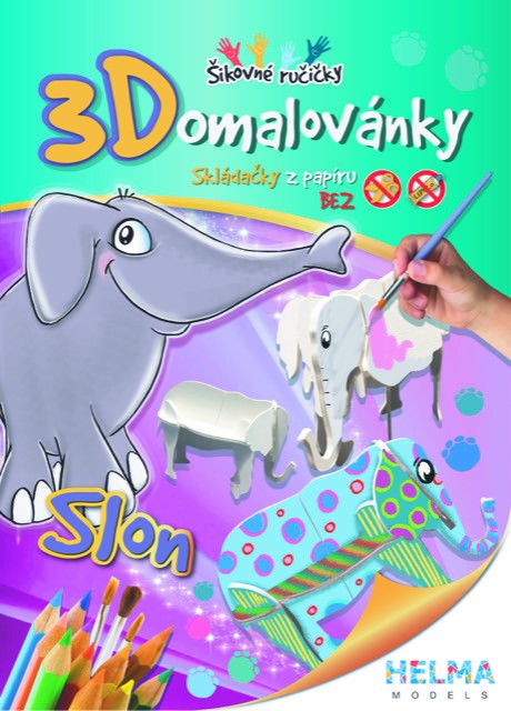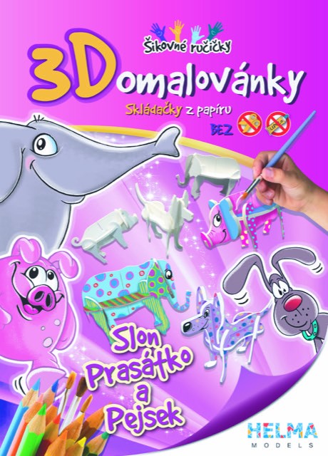 3D omalovánky jsou skládačka z papírového kartonu, kterou si mohu děti vymalovat podle vlastních představ. Podporují a rozvíjí dětskou představivost, fantazii, zručnost a prostorové vnímání. V nabídce jsou zvířátka jako slon, opice, prasátko, pes, kočka, netopýr nebo i pavouk. Na samotné skládání nebudete potřebovat nůžky ani lepidlo, což je velmi praktické. Stačí si připravit pastelky, fixy či vodovky a hra může začít. Fantizii se meze nekladou, nikde není psáno, že slon nemůže být třeba růžový nebo prasátko puntíkované.