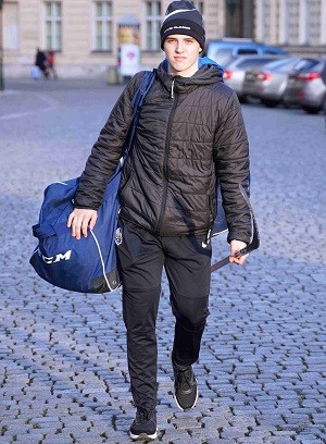 Tak já vstanu někdy okolo 7:30, jdu na snídani potom se vydám do kabiny, převlíknu se do posilovny, potom od 10 máme hodinu na ledě, já zůstávám déle a procvičuji většinou nějaké dovednosti. Po ledě máme oběd, pak většinou dělám něco do školy a potom chodím navíc ještě na led a opět dělám dovednosti, co potřebuju nebo s trenérem, když si řekneme nějaký věci, ve který bych se mohl zlepšovat. Chodím většinou střílet a do posilovny, ještě navíc cvičit a pak už je večeře a spánek, a ještě taky škola, když je potřeba něco dodělat.