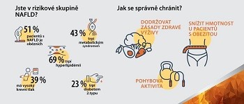 Jedná se o běžné a často „tiché“ onemocnění jater, které se nemusí nijak projevit. Hlavním znakem steatózy je hromadění tuku v játrech, které může později vést k zánětu (steatohepatitidě) a dalšímu poškození, jež vyústí v jaterní cirhózu. „Jaterní steatóza se vyskytuje i u lidí, kteří vůbec nepijí alkohol, zato mají nadměrný příjem kalorií, nevhodnou skladbu stravy a nedostatek fyzické aktivity. Výskyt jaterní steatózy úzce souvisí s výskytem obezity a posléze i diabetu 2. typu. Vyskytuje se u více než 80 % pacientů se závažnou obezitou a u 75 % pacientů s cukrovkou,“ říká diabetoložka MUDr. Marcela Szabó.