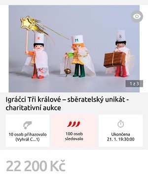21. ledna, byla ukončena aukce sběratelského unikátu v podobě tří figurek IGRÁČKŮ – Tří králů. Suma, kterou akce vytěžila dosáhla výše 22 200 korun a její celá výše byla připsána na účet Tříkrálové sbírky Charity Česká republika. IGRÁČEK Kašpar, Melichar a Baltazar existují v této podobě pouze v jednom jediném exempláři a od čtvrtečního večera mají již svého šťastného majitele. Vyvolávací cena celé kolekce byla jedna koruna. Aukce trvala deset dní a jejími partnery byl aukční portál Aukro a Charita Česká republika. Firma EFKO-karton, s.r.o. – výrobce IGRÁČKA, tak navázala na předchozí úspěšný projekt „Pomáhej s IGRÁČKEM“ v rámci něhož bylo vybráno přes jeden milion korun. Tyto peníze byly rozděleny mezi jednotlivé nemocnice, pečovatelské domy a jiná potřebná místa, která trpěla nedostatkem ochranných pomůcek.