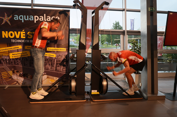 Slavia pojišťovna Sport Team zprostředkoval v Praze médiím i amatérským členům svého týmu setkání s lyžařskými legendami Stanislavem Řezáčem a Tord Asle Gjerdalenem (NOR). Oba úspěšní sportovci jsou letos ambasadory unikátního cyklistického závodu napříč republikou Král 50. rovnoběžky ale také ve Fitness Aquapalace Praha v praxi ukázali trénink na speciálním trenažeru určeném pro přípravu běžců na lyžích.