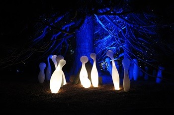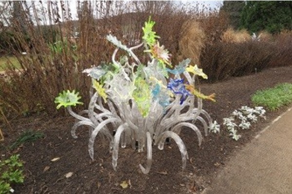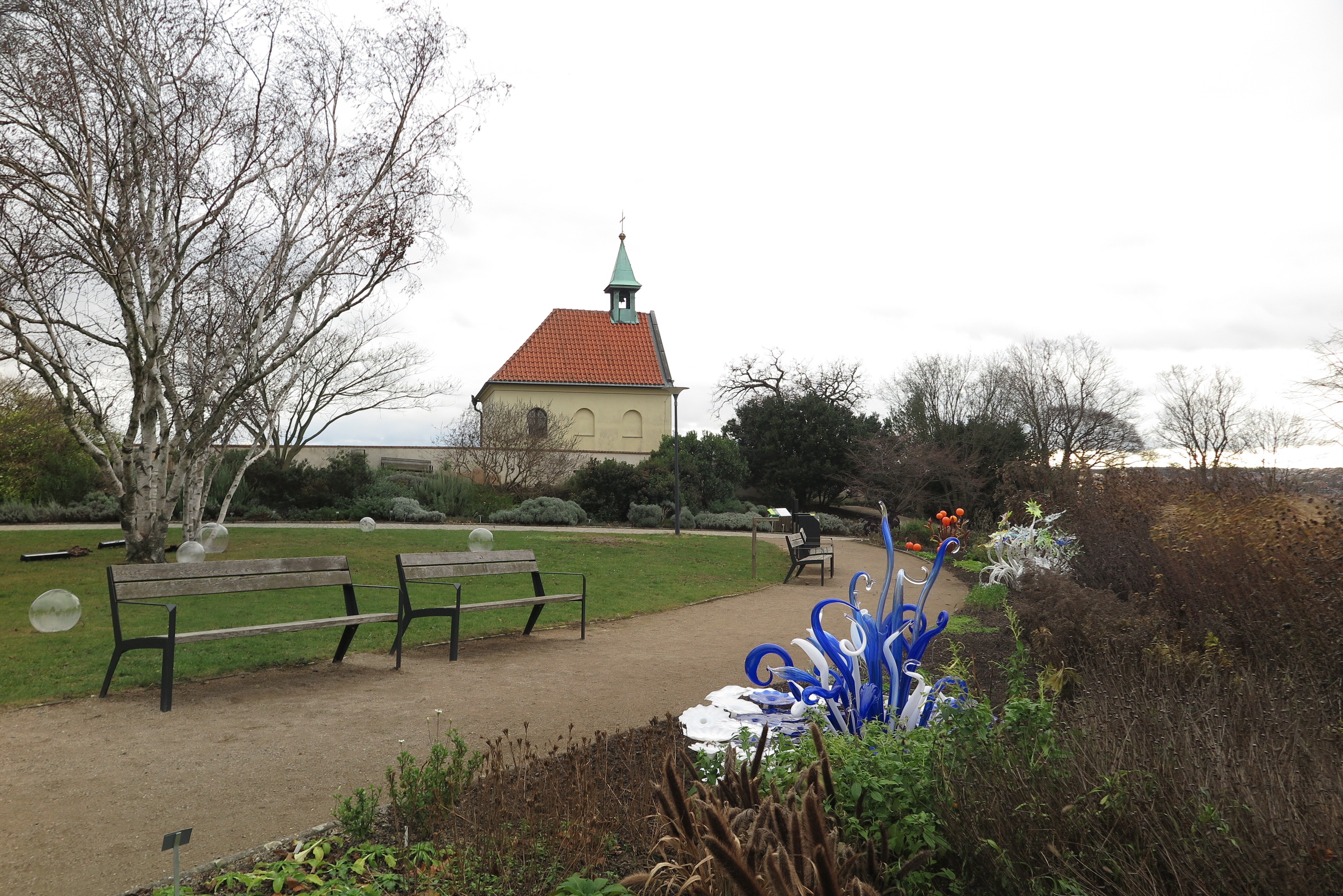Botanická zahrada v Troji je dost rozlehlá, v členitém terénu, což umožnilo rozmístit křišťálové květy a další objekty citlivě a působivě v úžasném množství i barevných kombinacích tak, aby vynikly a souzněly s prostorem, který ozvláštňují a přitom nepřehlcují. Takže úplně jiná výstava, než jakou lze spatřit ve výstavních síních. Najdete květy jako ze života i fantazijní, s vtipnými názvy, jako je skleněnka zářivá, bublinkovka sodová, hadovka lesklá, potkáte dokonce i Adélu, co ještě nevečeřela (i s tichým popěvkem), jezírko obklopené neskutečně půvabnými křišťálovými plameňáky i zelenkavou sekci Urana, která září jakoby vlastním světlem (nebojte se, uranové sklo není jakkoliv nebezpečné). A že je ten advent, tak po setmění vynikne nasvícení největšího osvětleného vánočního stromu v Praze (pochopitelně rostlého), pod nímž se skrývá stylizovaný betlém, samozřejmě ze skla. A před tím stromem velká andělská křídla, kde se můžete vyfotit, aby vám ta andělská radost vydržela. Specialitou výstavy jsou reprodukované tóny skleněné harfy v podání Petra Špatiny, které zaznívají u některých exponátů.