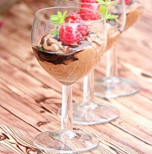 Avokádo rozkrojte, vyloupněte a vidličkou rozmačkejte na kaši. V misce dobře promíchejte s tvarohem a javorovým sirupem. Poté po částech vmíchejte do čokoládové směsi, dobře propojte a servírujte do talířů či pohárových sklenic. Ozdobte libovolným ovocem, sirupem či jedlými květy.