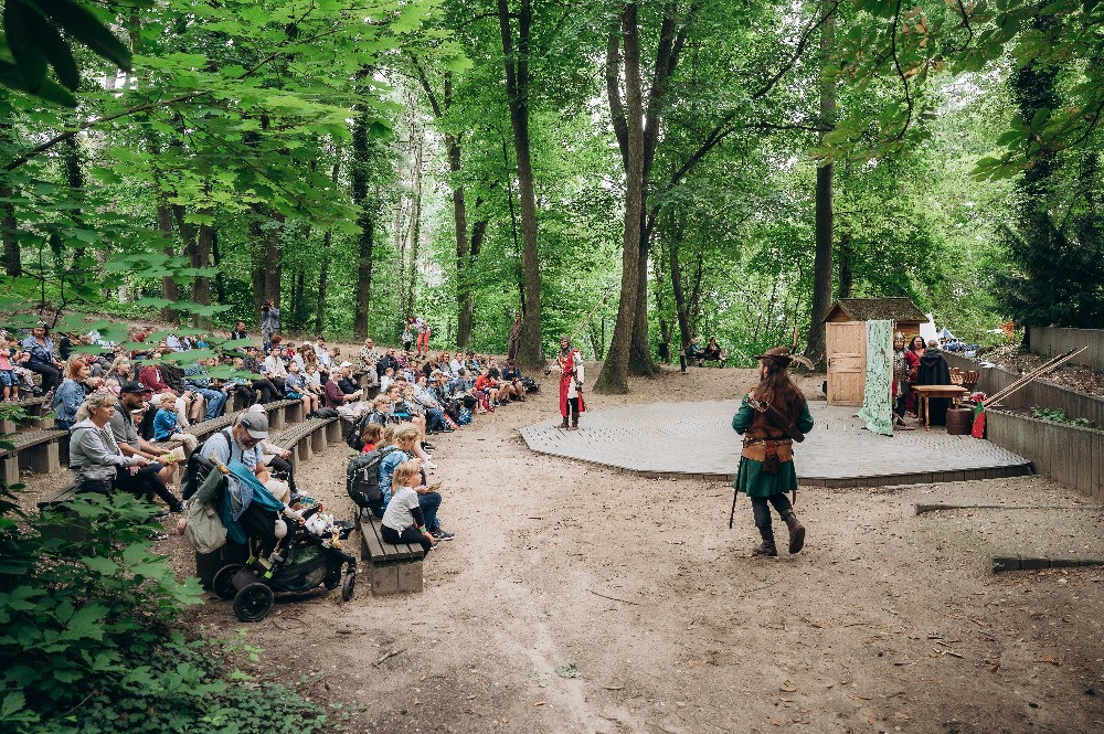 Součástí programu Robin HOOD jsou i dobové scénky, kde se utká Robinova družina s nottinghamskými zbrojnoši. Ty probíhají v zámeckém amfiteátru během celého dne. Při těchto scénkách děti odkrývají příběh Robina Hooda a lady Marion.