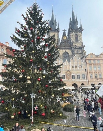 Vyrostl v nadmořské výšce 415 metrů nad mořem v malé obci Mlýny na Děčínsku. Na Staroměstské náměstí dorazil v úterý brzy ráno. Smrk ztepilý se teď bude čtyři dny zdobit, aby o 1. adventním víkendu mohl rozzářit Prahu i úsměvy návštěvníků vánočních trhů. Kácení, převoz i zdobení stromu zajišťuje třetím rokem městská společnost Technologie hlavního města Prahy (THMP).