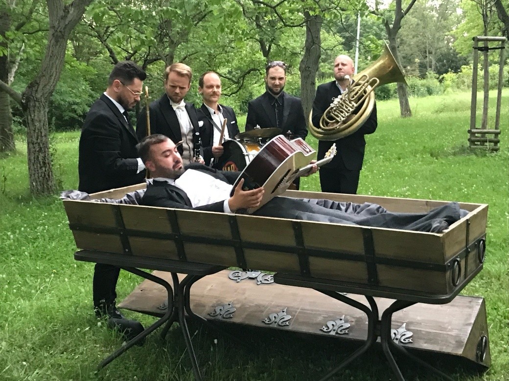 Rozverné postavičky z videoklipu se zhmotnily i na křtu. Mezi hosty se proplétali banán, panoš i liliput a pro tuto speciální příležitost vstala z mrtvých i legenda české popkultury Jirka Kára, který málem nestihl svou vlastní svatbu. „Klipy, kde je celou podstatou pár záběrů na kapelu, nás moc nebaví. Máme rádi příběhy, rozličné postavy a rádi v klipu písničku nějak parafrázujeme,“ říká klarinetista kapely, Tomáš Kůgel.