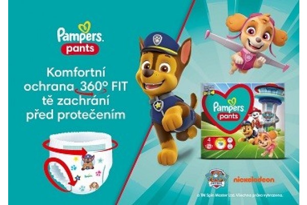 Značka Pampers nově potěší děti a jejich rodiče limitovanou edicí plenkových kalhotek Paw Patrol s motivy ikonických štěněcích hrdinů z oblíbeného dětského pořadu. Hrdinové Skye, Chase, Marshall a Rubble budou nyní dětem dělat společnost při prvních krůčcích, objevitelských hrách i klidném spánku. Kromě veselých motivů jsou plenky vybavené také hrdinskými funkcemi, které zabraňují protečení tekutiny během celého dne i noci. Vybavte se novými plenkami na svou další záchrannou misi!