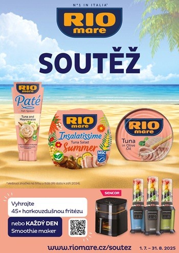 Pro potěchu všech milovníků dobrého jídla i chytrých kuchyňských pomocníků. Celý červenec a srpen máte možnost vyhrát každý den Smoothie Maker Sencor VITAMIN+ nebo každý týden 5 horkovzdušných fritéz Sencor. Stačí si zakoupit libovolný produkt Rio Mare, kdekoli v ČR, zaregistrovat účtenku na webu www.riomare.cz/soutez, a pak už jen věřit, že se na Vás usměje letní štěstí.