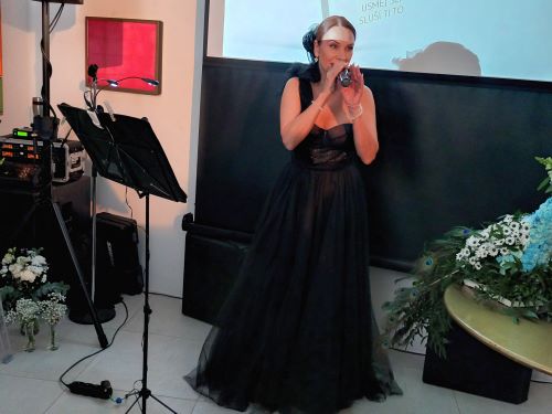 "Večer zpříjemnila okouzlující herečka, zpěvačka a tanečnice Jana Vaculíková, která zazpívala několik svých šansonů a sklidila za ně velký potlesk."