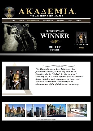 Electric Lady se se svým EP WICKED dostala až do LA! Tam si získala pozornost The Akademia Music Awards, kteří každoročně hodnotí nejlepší hudební počiny umělců z celého světa. Odborná porota Akademie prohlásila toto EP nejen jako velmi zdařilé, dokonce mu udělila první místo a cenu za nejlepší album měsíce února 2020!
