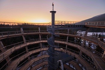 O Stezce - Stezka korunami stromů Krkonoše se nachází na okraji Janských Lázní v Krkonoších. Jedná se o zážitkovou a naučnou Stezku v celkové délce 1 511 metrů, která je zakončena výstupem na 45 metrů vysokou vyhlídkovou věž. Návštěvníci se na trase Stezky vydají od kořenů, přes visutý chodník a unikátní podzemní jeskyni až ke korunám stromů na vrcholu vyhlídkové věže. Na rozdíl od běžného výletu do lesa jim Stezka korunami stromů Krkonoše ukáže les z jiné perspektivy a jedinečná podzemní expozice nabídne možnost prostudovat mikrosvět půdy. Z vrcholu Stezky je možné si vychutnat výhledy do korun stromů smíšeného krkonošského lesa i do krajiny kolem. Cesta dolů pak může být výrazně urychlena jízdou v tobogánu, jehož tubus o průměru jeden metr je dlouhý 80 metrů. Původně byl tobogán určen dětem, ale hojně jej využívají všichni návštěvníci, včetně seniorů. Zatím nejstaršímu jezdci na tobogánu bylo úctyhodných 85 let. Za pěkného počasí lze dosáhnout v tobogánu rychlosti až 30 km/h, za špatného počasí tobogánem sjet možné není. Rychlost, které by bylo možné dosáhnout (s podporou napršené vody), by mohla totiž dosáhnout až 80 km/h.