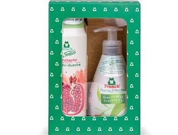 Vánoční dárkovou sadu sprchového gelu Frosch Senses a dávkovače tekutého mýdla s vůní a výtažky z granátového jablka ocení všichni milovníci svěžích ovocných vůní. Složení s pathenolem a extraktem z granátového jablka pečuje o pokožku, zatímco ovocná exotická vůně působí povzbudivě na smysly. Doporučená cena: 159,90 Kč