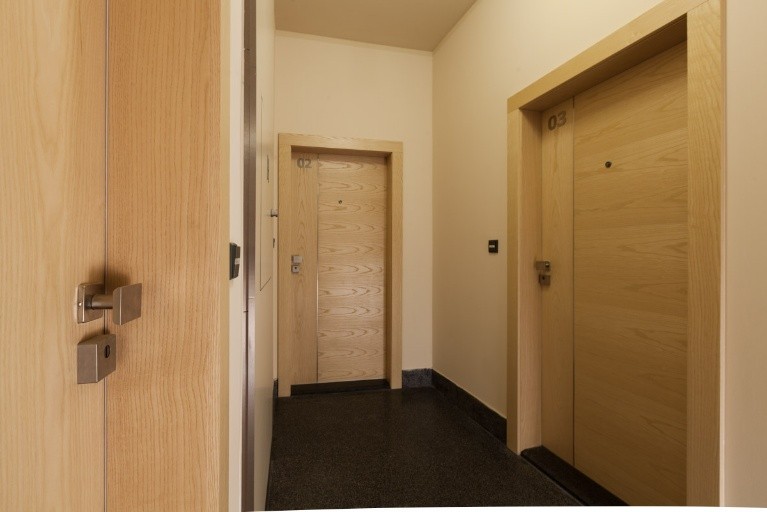 Vchodové bezpečnostní dveře NEXT SD101 - jednotný design dveří v bytovém domě. Zdroj: NEXT a.s.