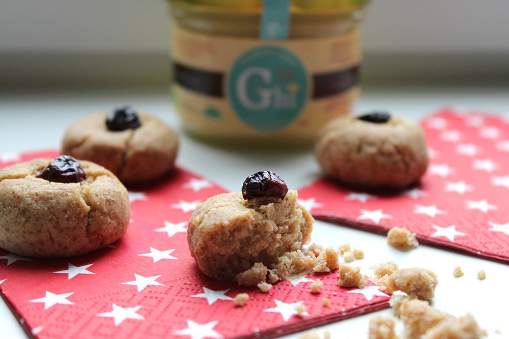 Postup: V míse smícháme špaldovou mouku s třtinovým cukrem. Přidáme Ghí od Českého Ghíčka a ručně vypracujeme „máslové“ těsto. Z toho pak tvoříme kuličky, které klademe na plech vyložený pečicím papírem. Kuličky palcem ruky opatrně stlačíme a doprostřed vzniklého důlku vložíme brusinku. Pečeme v troubě vyhřáté na 180 ˚C asi 20 minut. Sušenky necháme vychladnout na mřížce a můžeme mlsat.